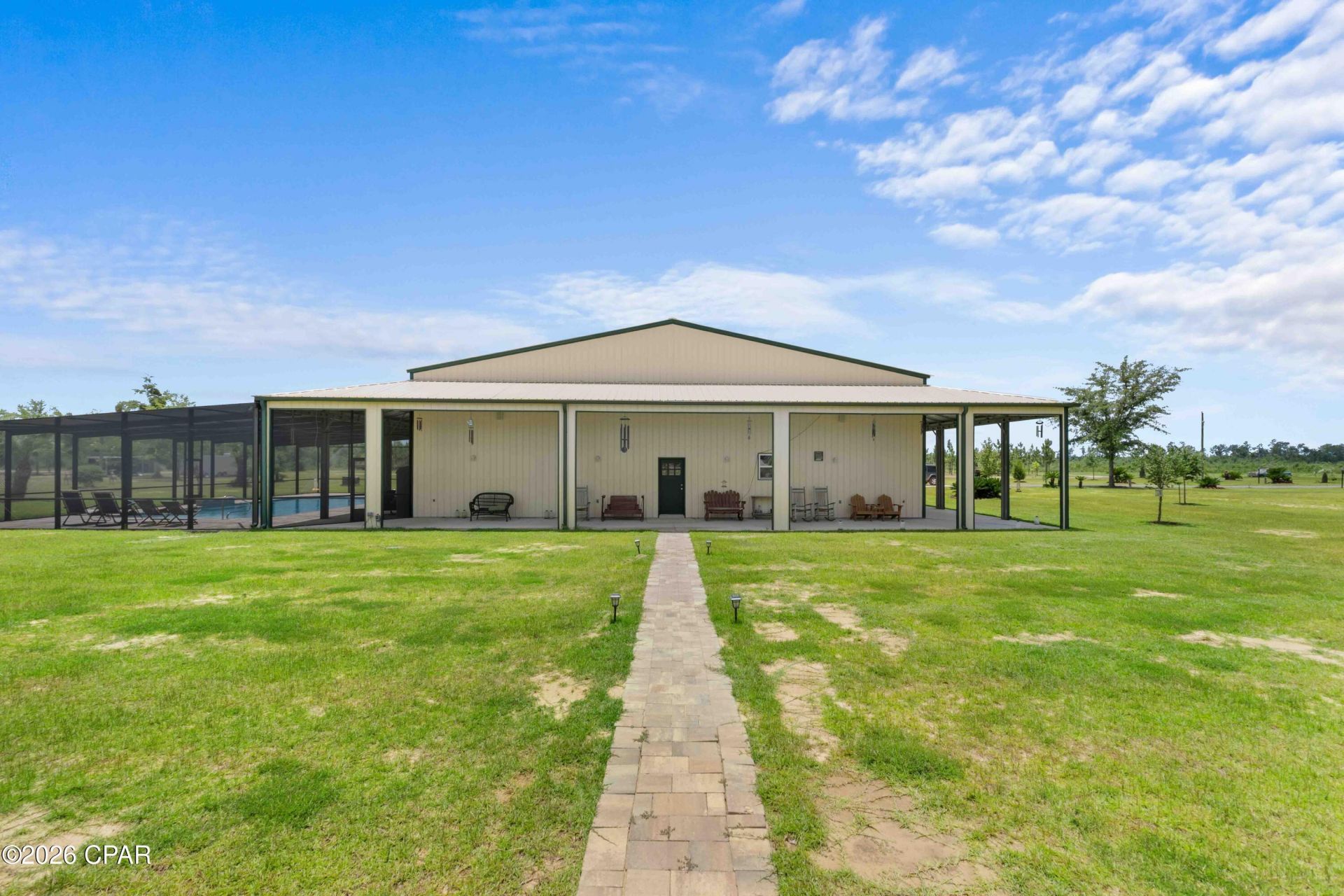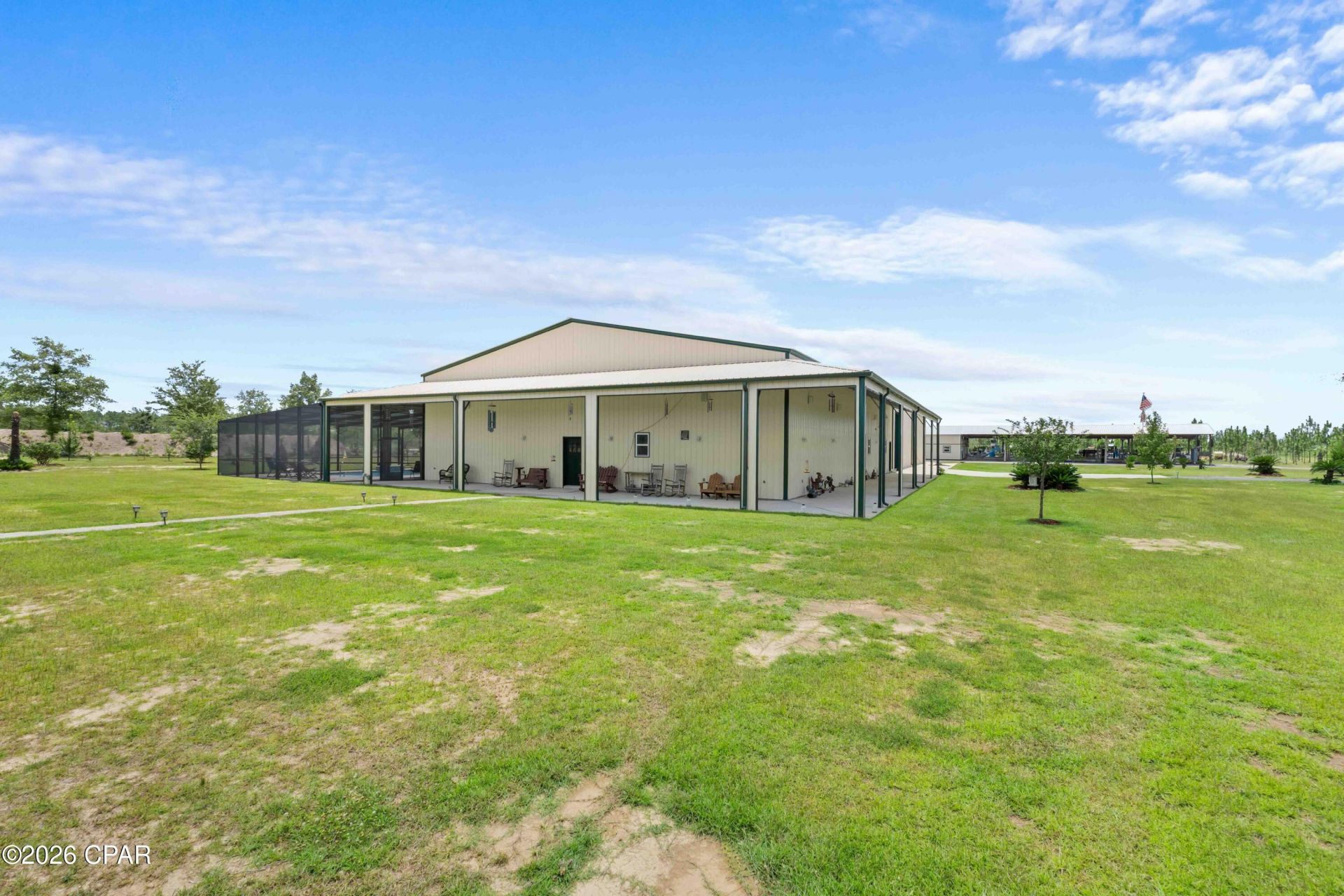 One-of-a-Kind 380-Acre Luxury Barndominium Estate | Recreational Paradise & Private Retreat Welcome to a truly exceptional opportunity -- a 9,600 sq ft fully insulated Barndominium on 380 acres of pristine North Florida land, located just 30 miles from Panama City. This multi-functional estate offers the perfect blend of luxury living, recreational freedom, and income-producing potential. Main Living Quarters (8,400 sq ft Heated & Cooled) 2 Bedrooms + Loft Bedroom | 3 Full Bathrooms Open-concept living with 18' ceilings, custom pine walls, and epoxy flooring Two fully equipped designer kitchens with pine cabinetry, granite countertops, high-end appliances, island seating, and walk-in pantry Spacious master suite features built-in cabinets, surround sound, electric fireplace, private pool access, and an oversized walk-in closet Gas fireplace, two laundry rooms, and four HVAC systems for zoned comfort Tankless water heater for energy efficiency Recreation Wing (6,000 sq ft) Massive 100' x 60' climate-controlled space with three 16' x 12' roll-up doors--perfect for RV or equipment storage Includes a full kitchen, full bath, and 1,000 sq ft storage room Ideal for entertaining, business use, or indoor sporting activities. Outdoor Oasis Resort-style 40' x 20' heated saltwater pool with tanning ledge, waterfall feature, and full screen enclosure 20' x 60' covered carport, covered porches, and landscaped grounds with full sprinkler system Guest house, dog kennel, and 1,032 sq ft insulated/heated/cooled workshop with car lift Land & Lifestyle 380 private acres with diverse terrain: pastureland, hardwoods, deer plots, and stocked ponds (catfish & bream) East prong of Bear Creek runs through the rear of the property Multiple pole barns, 5 shallow wells, 1 deep well, and 2 septic systems Abundant wildlife: deer, turkey, black bear - ideal for hunting or eco-retreat Property is 1 mile deep from State Road 20 for unmatched privacy Endless Potential This estate is turnkey and adaptable for various uses such as private residence, family compound, cattle ranch, equestrian facility, hunting & outdoor retreat, corporate or church retreat center, event venue, festival grounds or data center. Location 30 mi to Panama City, FL 61 mi to Dothan, AL 82 mi to Tallahassee, FL 132 mi to Pensacola, FL All furnishings are negotiable. Shown by appointment only. No expense spared--this is more than a home; it's a lifestyle.